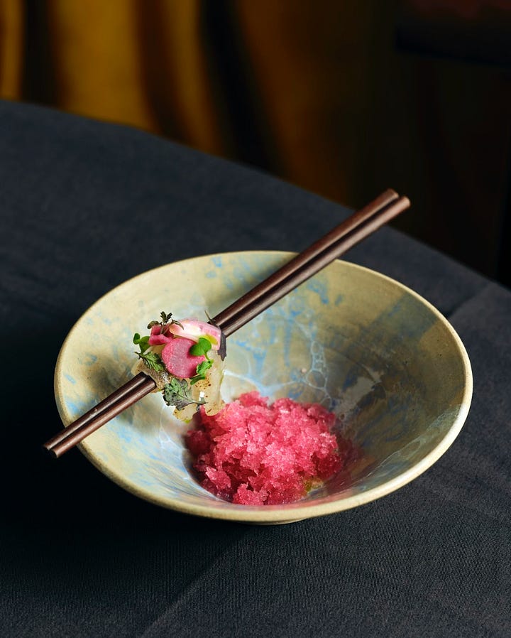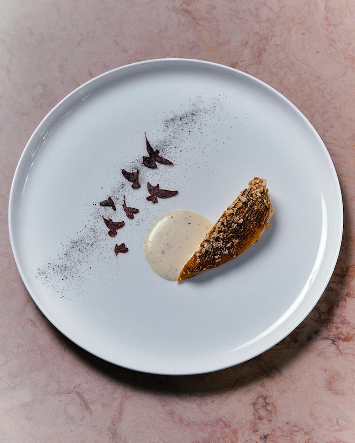 Sprouted at that early client dinner, the seed for Counter- grew to be a series of pop-ups in 2019, finally blossoming into a brick-and-mortar restaurant on September 9, 2020. The name of the restaurant doesn’t only reflect the 18-seat U-shaped concrete counter where diners sit watching a story unfold in the open kitchen; more importantly, it refers to Hart’s wish to be a counterbalance to how fine dining is normally operated.