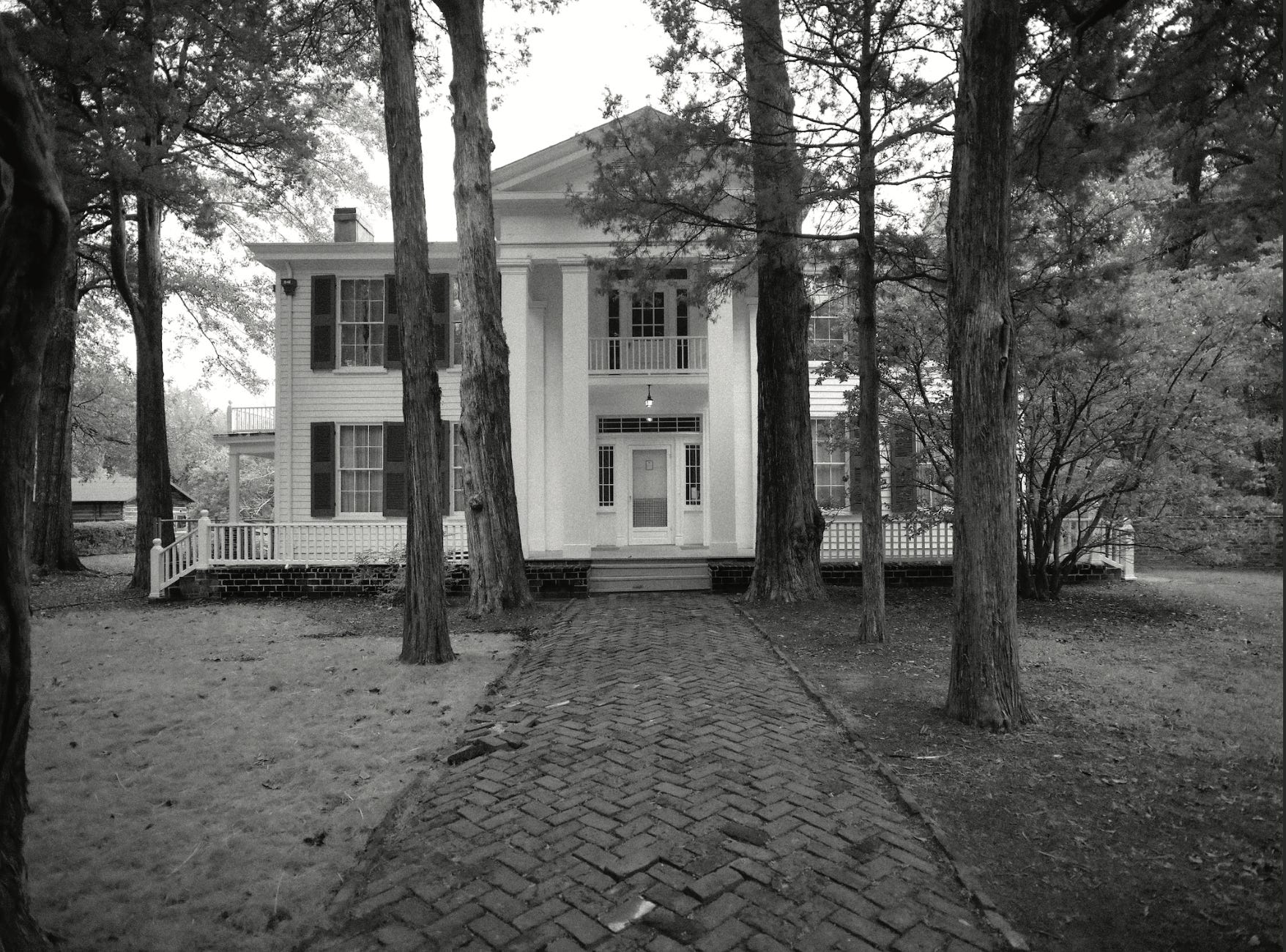 Faulkner named their home “Rowan Oak” after two trees: the rowan tree of Scotland, a symbol of peace and security, and the live oak of America, a symbol of solitude and strength. While neither tree has ever grown on the property, Rowan Oak boasts a diverse landscape, celebrated in Ed Croom’s beautifully photographed The Land of Rowan Oak: An Exploration of Faulkner’s Natural World. The house is centered on four landscaped acres, which include a concentric circle garden, a scuppernong arbor, a pasture for Faulkner’s horses and milk cow, and outbuildings such as a stable, barn, and servants’ quarters (the residence of Caroline Barr, the Faulkner family caretaker, who lived in the building until 1940 when she died at age 100).